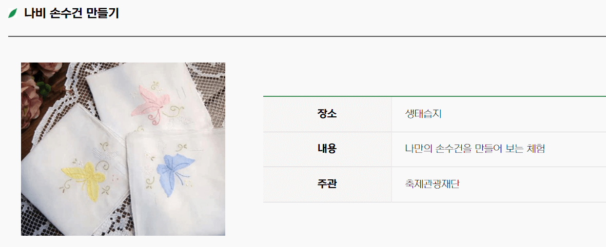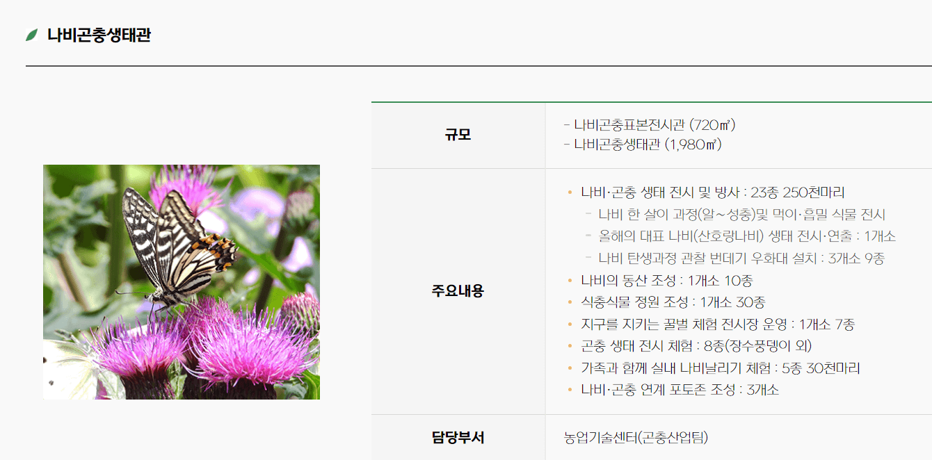 - 꽃·나비·곤충을 소재로 한 다양한 전시 및 체험, 문화행사 등