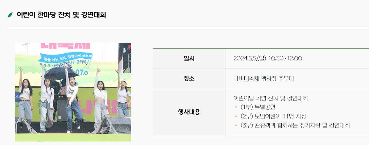 함평 나비대축제 진행 프로그램 안내