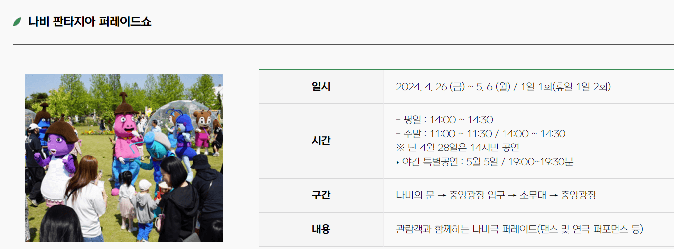 ✅ 기간: 2024. 4. 26.(금) ∼ 2024. 5. 6.(월) / 11일간 9:00~18:00 운영 (매표 마감 17:00)