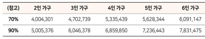 세대 월평균소득이 전년도 도시근로자 가구당 월평균소득의 70% 이하(맞벌이는 90%이하)